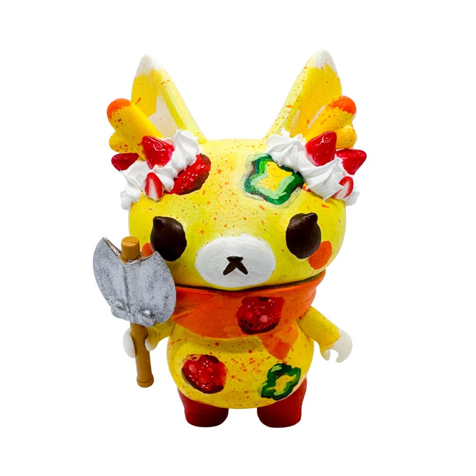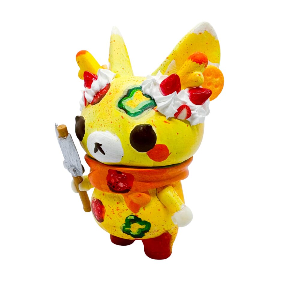 - 北海道で丹頂に出会ったもみじちゃんの姿。お腹には折り鶴の丹頂が。武器は耳と同じく金のグラデーションが掛かっています。